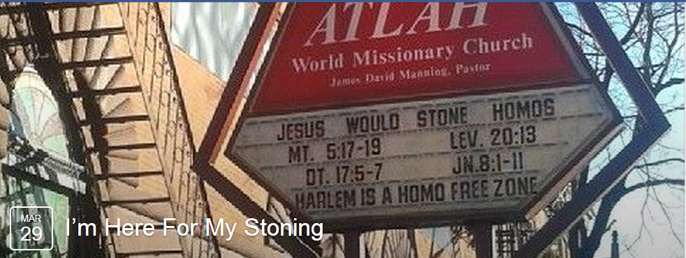 “Several transgender leaders in NYC came to support me and the LGBT community. We as Trans people physically feel the violence that signs, homophobic and trans messages such as the ones spread by David Manning spread. Less then 20 blocks away from that church, a Trans woman was killed, beaten to death for simply being trans. It is signs and teachings like this that cause such hate in our community. Tonight I was afraid to walk home, I waited at the event I was at until a friend was ready to walk home with me.”