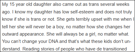 In other words, when people with an elementary school sex education confidently assert that transition doesn’t “change your DNA,” they’re demonstrating their scientific ignorance. As an aside, I wonder what a Venn diagram might look like for the people who claim that transition doesn’t change one’s DNA and those who were very concerned that their COVID-19 vaccination would change their DNA.